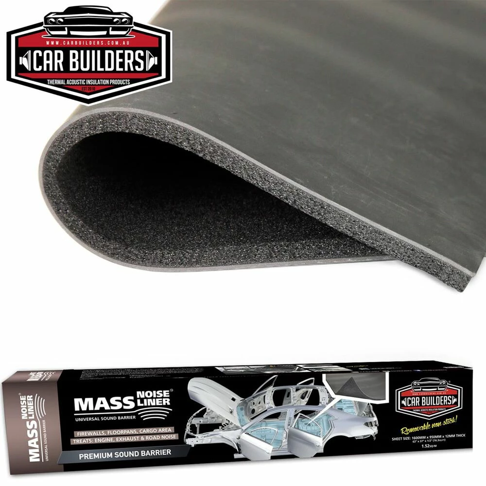 Car Builders Mass Noise Liner is a 12mm thick, heavy weight barrier as used in high end luxury vehicles. It is the most effective sound proofing material on the market. Premium Carpet Underlay/ Removable sound deadener suitable for boots, firewalls, behind rear seats