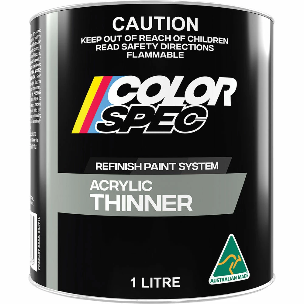 ColorSpec Acrylic Thinner is a balance of high-quality solvents blended together. It delivers great flow, excellent gloss and blush resistance under conditions of normal temperature and humidity. Suitable for thinning or reducing ColorSpec Base Coat and Clear Coat along with automotive acrylic lacquers.