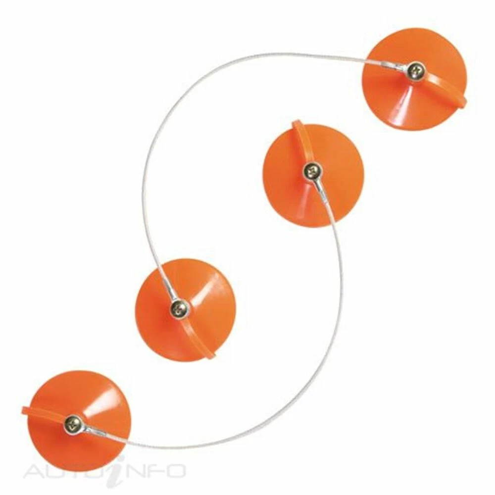 - Set contains two pairs of suction cups attached via a flexible steel cable