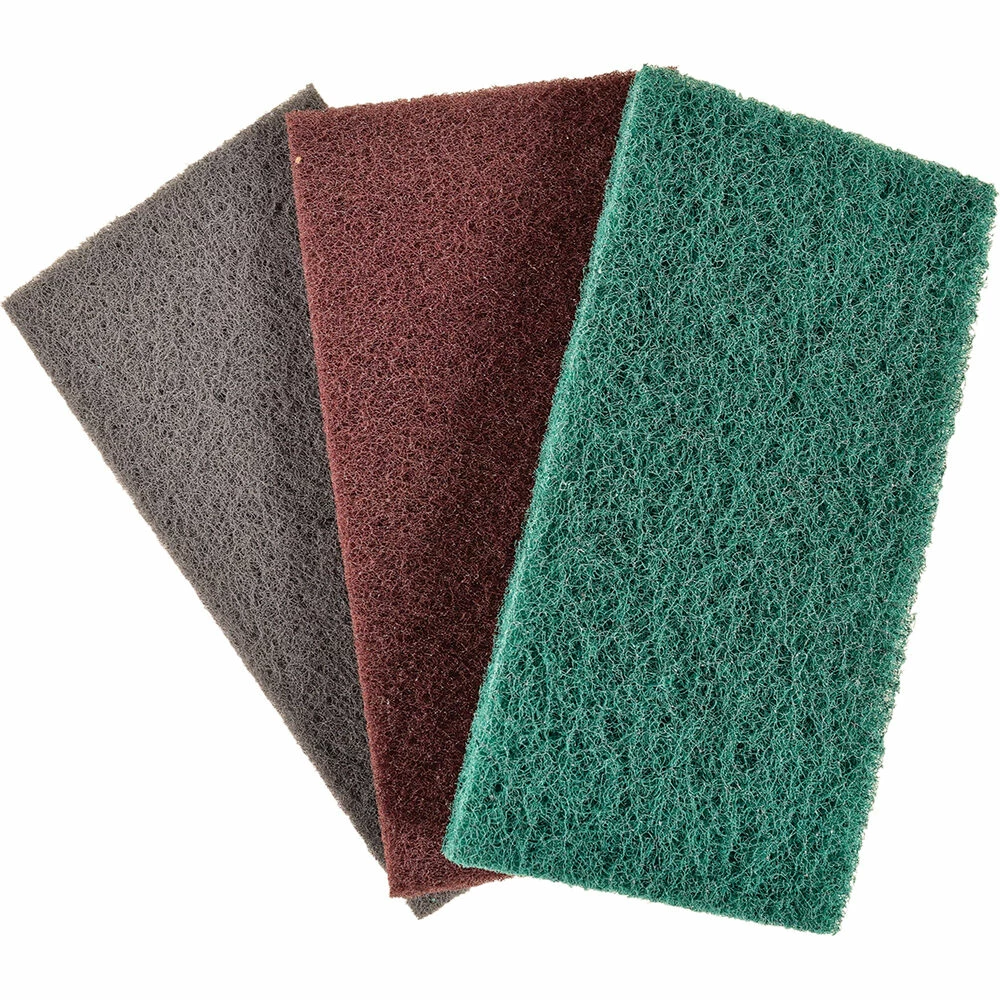- Pack includes 3 Scouring Pads : 1 x Green (coarse), 1 x Maroon (medium), 1 x Grey (fine)